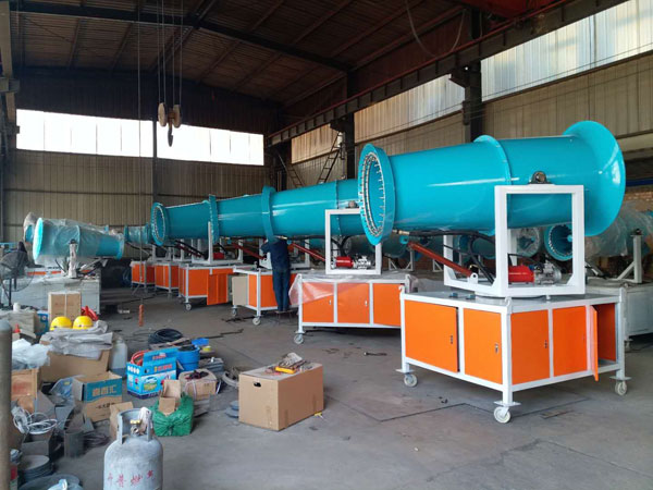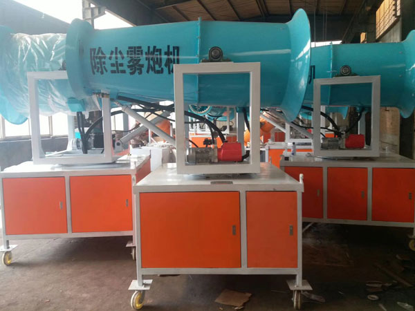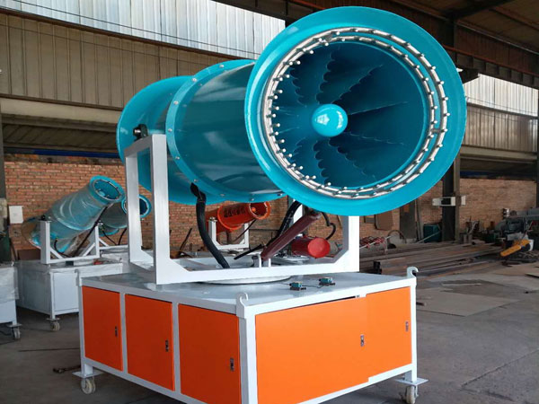 选择除尘雾炮机-喷雾机应首先考虑除尘喷雾机所选风机制造是否合格,设计是否合理,因为风机是影响除尘喷雾机射 程的主要因素,风机计设、制造不合理,将直接影响除尘喷雾机的雾化效果及降尘质量。 除尘 雾炮机- 喷雾机是依靠风机鼓出的气流将雾滴进一步的破碎雾化,并使雾粒具有足够的动能射向远方。这样微小的雾粒就可