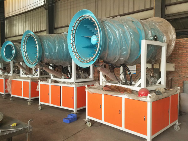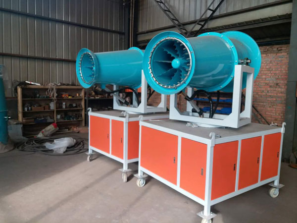 由于雾炮机喷出的水雾颗粒与粉尘尘粉凝结效率高,所以除尘效果十分显著。雾炮机喷雾降尘过程可以看做是液态雾粒与固体粉尘颗粒相互碰撞,凝聚沉降的过程。雾炮机喷雾的水雾有较多的正负电荷,提高了单颗粒水雾对粉尘的捕捉效率。 雾炮机的组成。雾炮机主要由高压水泵、水质过滤器、供水箱、高压喷雾负压喷头、电控系统、